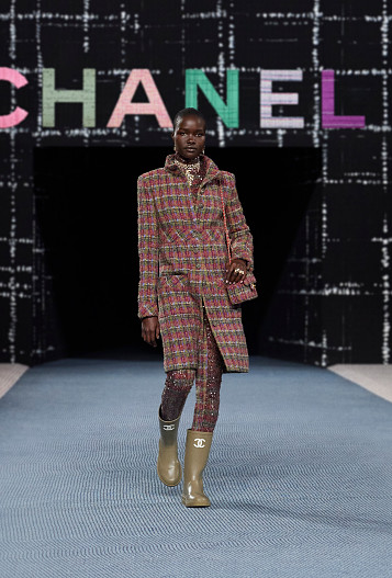 В коллекции Chanel Осень-Зима 2022/23 Ready-to-Wear, представленной в пространстве Grand Palais Éphémère, полностью окутанном твидом, вошли куртки психоделических цветов, слегка мужественные или слегка оверсайз, брюки черного цвета, одежда из бархата, узкие юбки, остроносые туфли-лодочки с мини-шпилькой из лакированной кожи, а также высокие сапоги до бедра. «Я также думала об Англии 1960-х и об очень ярких обложках альбомов», — добавляет Виржини Виар.