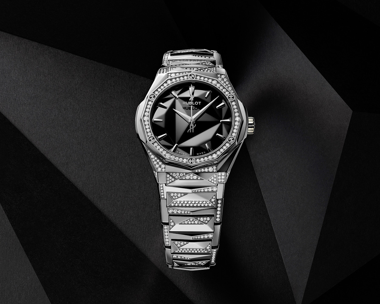Подобно украшенному драгоценными камнями произведению искусства, Hublot также представляет модель Classic Fusion Orlinski Bracelet c интегрированным браслетом, который, как и корпус, инкрустирован бриллиантовым паве. Усиливая игру света и тени, некоторые грани на корпусе, безеле и браслете дополнены бриллиантами общим весом 3,79 карата.