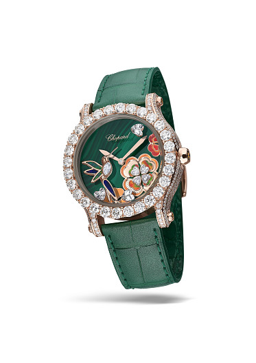 Каждая из трех моделей коллекции выпущена лимитированной серией из 8 экземпляров и посвящена животному, нуждающемуся в защите. Циферблаты часов из минералов с инкрустацией элементами разного размера производят впечатление объемных. Это настоящие миниатюрные экосистемы. Новые часы Happy Sport – это также пример новаторского использования высоких технологий, позволившего полностью обновить легендарный балет Happy Diamonds. Траектория подвижных элементов была переработана индивидуально для каждой из трех серий.