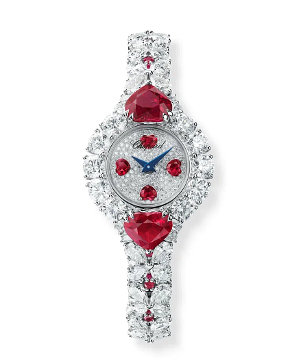 В рамках предварительного показа коллекции Red Carpet представлено две модели часов: одна из них украшена розетками из бриллиантов и сапфиров розового, желтого и оранжевого цветов, на второй рядом с бриллиантами сияют великолепные рубины огранки «сердце».