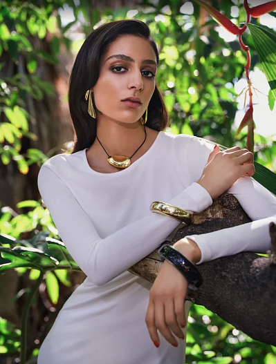 Украшения Elsa Peretti® Bean прочтения 2022 года сочетают в себе вневременную органическую красоту мотива, вдохновленного «фасолинкой» Перетти, с простой элегантностью цепи из 18-каратного золота и бриллиантового паве. Знаковые материалы Перетти, такие как: зеленый нефрит, японский лак и шелк, также использованы в новом прочтении коллекции.