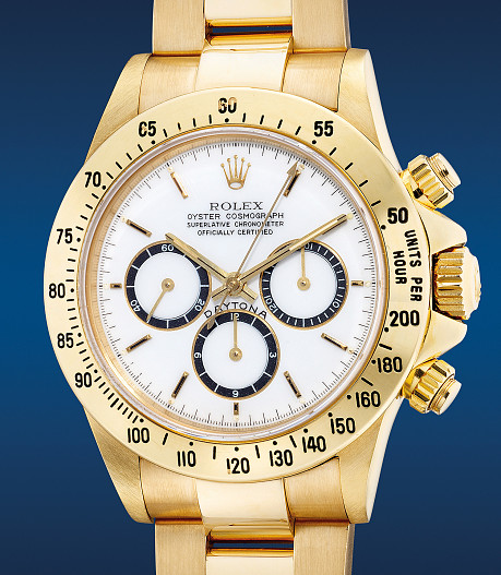 Хронограф Rolex Cosmograph Daytona Ref. 16528 "Ying Yang" в корпусе из желтого золота (ок. 1989 г.). Проданы за HK$ 3,654,000 (US$ 465,520).
