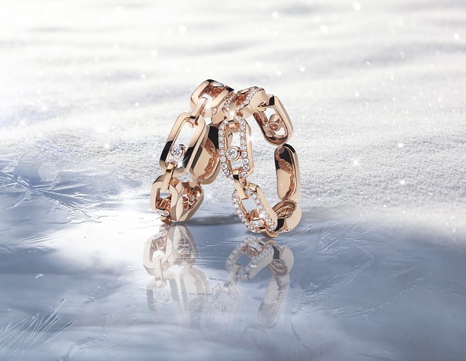 Изделия Move Uno выполнены из золота с одним подвижным бриллиантом. Украшения можно носить как отдельно для более классического образа, как и в сочетании с другими изделиями.