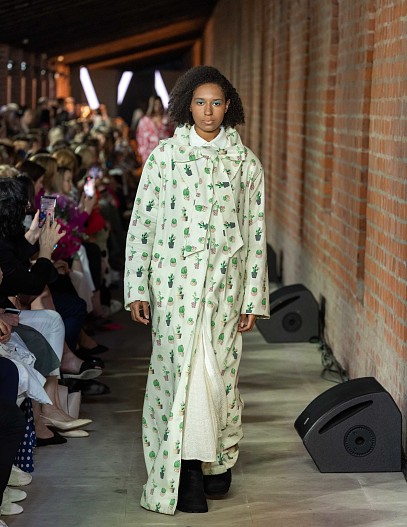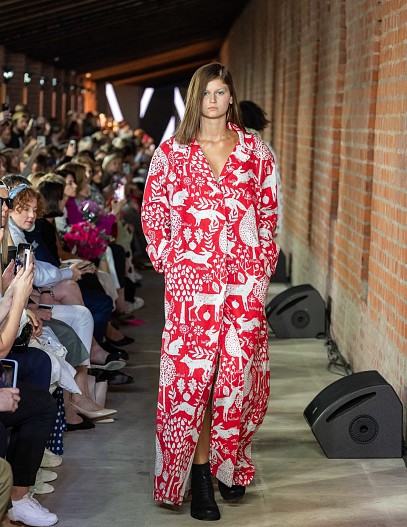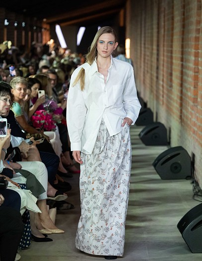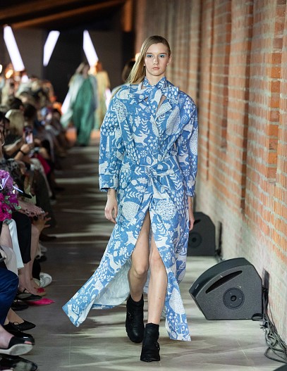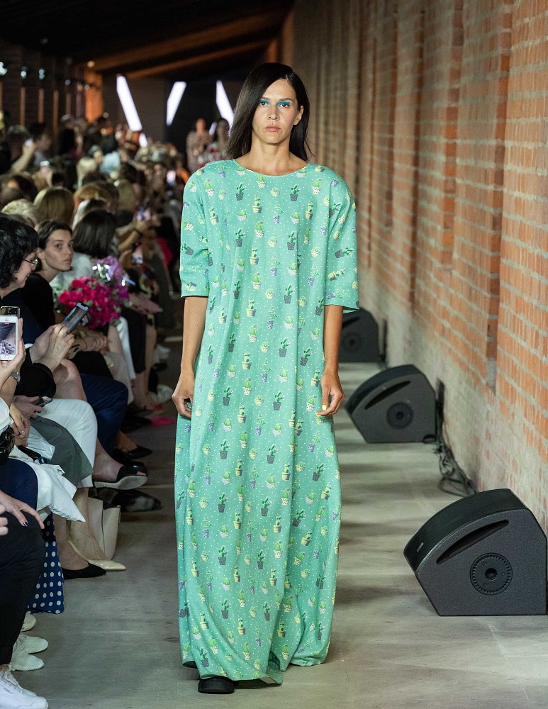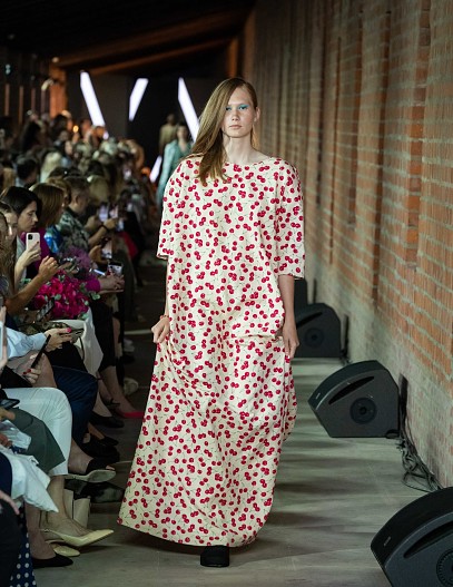 Сохранение народных промыслов как культурного феномена, бережное отношение к доверенному нам наследию и качественная его трансформация на новом витке дизайнерских пассов, трендов и сезонов — миссия не только эстетическая, но и эмоциональная. В коллекции были использованы принты из ассортиментного кабинета фабрики. Силуэты коллекции — характерные для почерка бренда oversize, архитектурные формы и многослойность.