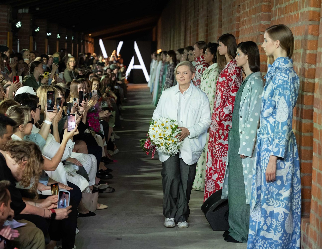 «Victoria Andreyanova — это шотландские мохеры, итальянские шелка, а теперь и русские ситцы. Надеюсь, вы, как и я, посмотрите на них с нового ракурса», — прокомментировала Виктория Андреянова.