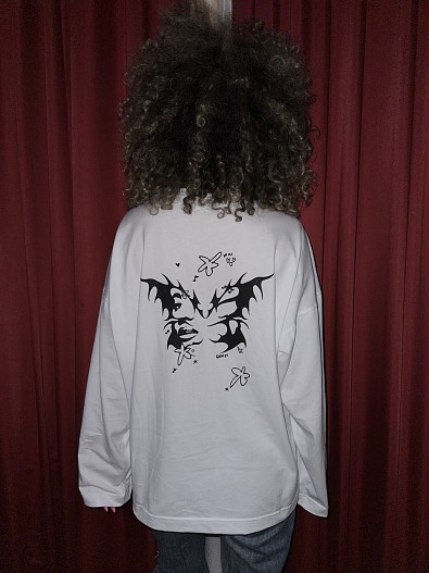 «Захотелось сделать приятное дополнение к моему новому альбому. Мы решили, что это может быть мерч, какая-то вещь, которую носят мои друзья. Например, лонгслив — он комфортнее и функциональнее, чем футболка, такой кежуал-вариант. Фотографию на принт выбирали из большой съёмки, чтобы она классно сочеталась с рисунком», — рассказала ANIKV.