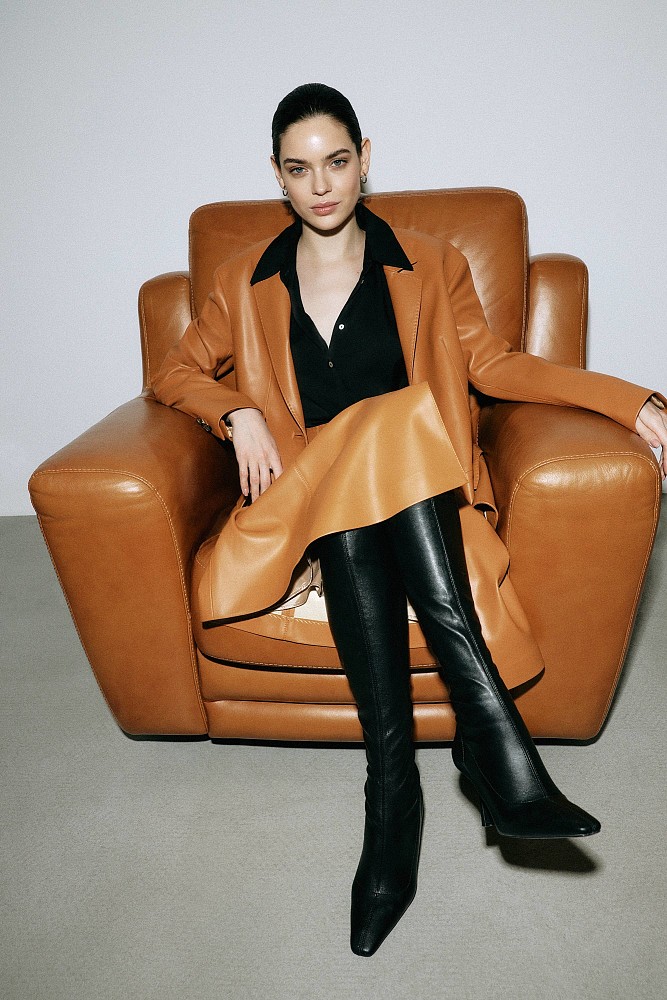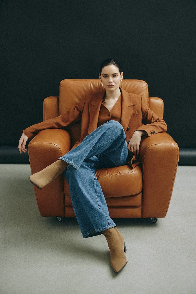 Натуральные по составу ткани: шерсть, шелк ,хлопок, лен, рами (крапива); мятые, жатые, крафтовые фактуры, имитирующие природные материалы, такие как соты и рогожка. Цвета кофе, свеклы, корицы, шафрана, горчицы, неокрашенного льна. CHARUEL не первый сезон подхватывает тренд на экологичность — один из основных трендов современности.