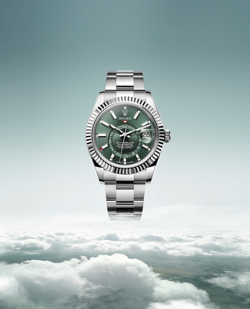 Часы Sky-Dweller с отображением времени сразу двух часовых поясов и годовым календарем Saros являются элегантным и ценным спутником заядлого путешественника. В новинках опять применяется 18-каратное белое золото в сочетании с ослепительно- черным циферблатом и удобным браслетом Oysterflex с застежкой Oysterclasp и системой удлинения Rolex Glidelock. Также в оформлении Sky-Dweller появились новые цвета циферблата: изысканный цвет зеленой мяты в стиле Rolesor белого цвета и элегантный сине-зеленый в версии из 18-каратного золота Everose с браслетом Oyster. Во-вторых, это и техническая эволюция в виде нового калибра 9002, в котором присутствуют самые последние технологические разработки Rolex. В нем применены ход механизма Chronergy и новый инерционный груз с оптимизированным шарикоподшипником, которые обеспечивают еще более высокие функциональные показатели.