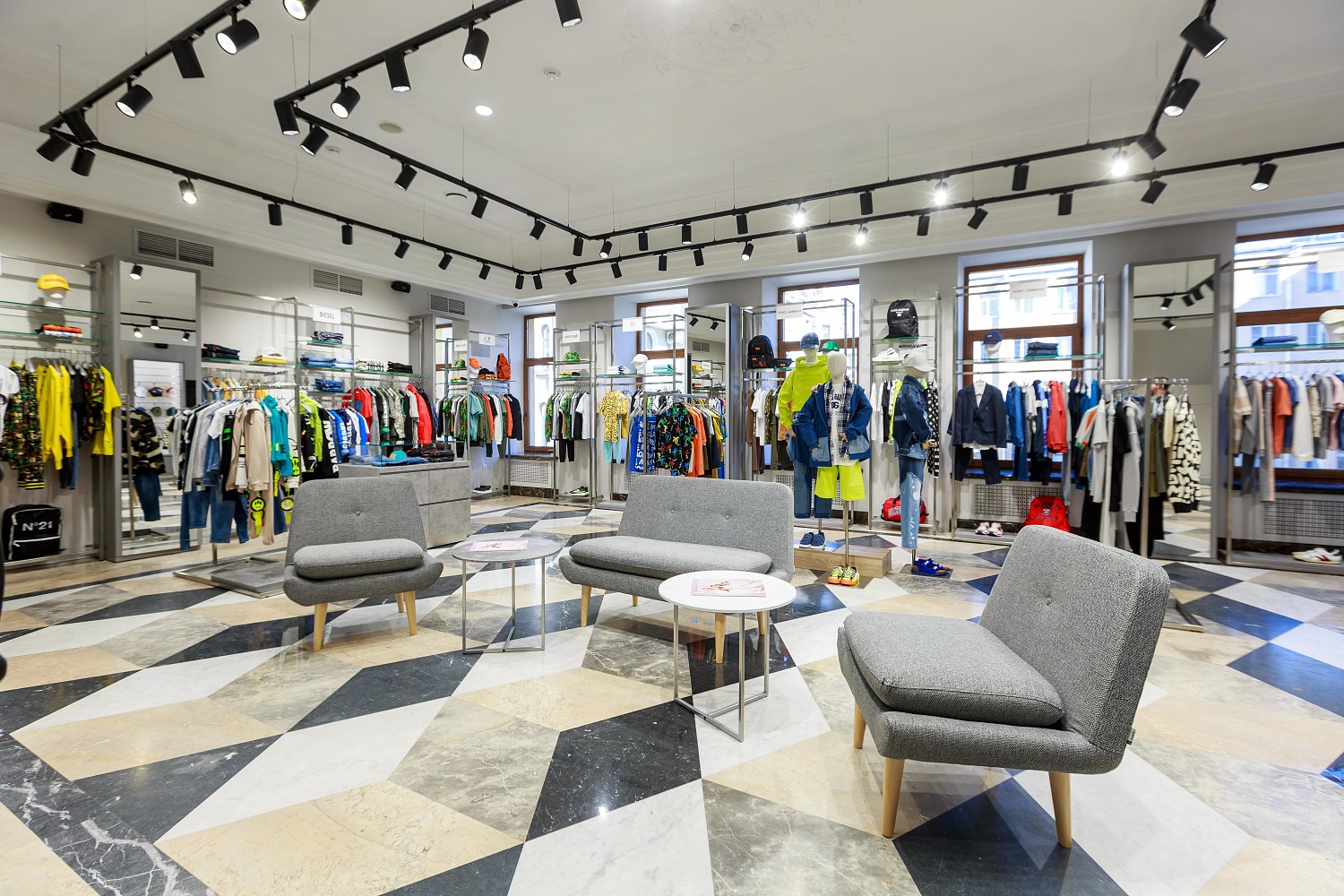 В ассортименте нового салона есть сотни мировых брендов для детей и мам: от детских коллекций Dolce&Gabbana, Emporio Armani, Monnalisa, Diesel, Marni и MM6 Maison Margiela до первых линий модных домов Roberto Cavalli и Alberta Ferretti и современных марок, таких как GCDS, MSGM, Vivetta. Чтобы завершить создание модного образа, на втором этаже салона покупатели могут подобрать к одежде обувь — на каждый сезон и для любого случая.