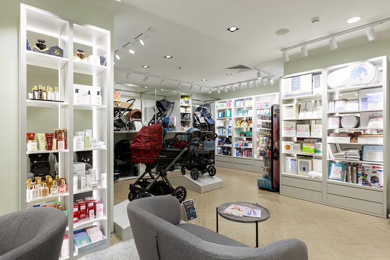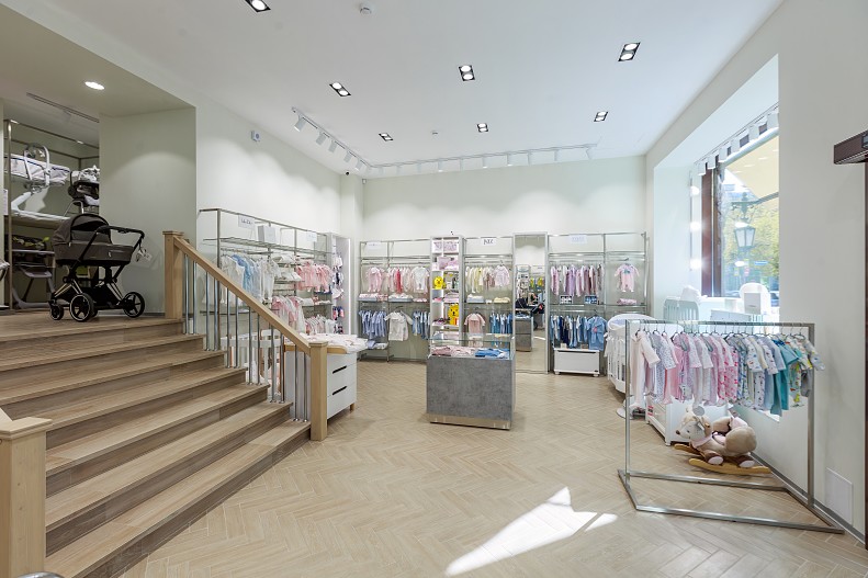 Отдельное место занял зал для новорожденных, где родители выберут приданое для малышей: от кроваток и автокресел до ползунков и пинеток, а также эксклюзивных товаров, найти которые можно только в «Кенгуру». Попасть в этот зал можно как через общее пространство салона, так и с отдельного входа.