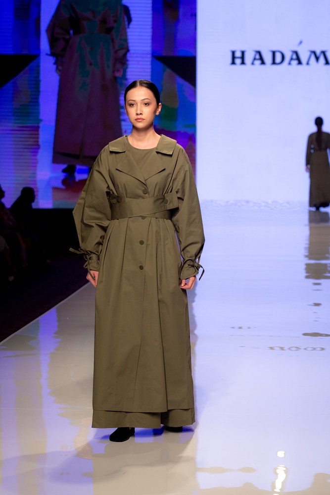 Дагестанский modest fashion-бренд HADÁMI, основанный в 2018 году двумя сестрами Хадижат и Аминат Магомедрасуловыми. В концепции бренда переосмысливается идея о скромной одежде как строгом облачении для мусульманок. Костюм для покрытия больше не обязан быть бесформенным и черным, а вполне может соответствовать сегодняшним тенденциям. Кроме того, бренд стирает границу между светским и религиозным: modest сегодня – это больше, чем традиция, это целый образ жизни, в основу которого входят представления о связи с собственными корнями, комфорте, уникальности и многослойности как основах современной жизни. Именно поэтому модели бренда очень быстро привлекли светских покупательниц. В основе коллекций бренда лежит игра с локальными кодами: последний дроп был посвящен образу дидойской женщины. Дидойцы – коренной горный народа Дагестана. В новой коллекции «Изначальный образ» дизайнеры вдохновились поэзией японского монаха и мыслителя XIII века Догэна. Основа дропа – базовые, легко сочетающиеся между собой вещи, которые впишутся в любой гардероб: юбки, платья, а также костюмная группа и тренчи нестандартного кроя, которые уже успели стать визитной карточкой бренда. Для изготовления моделей преимущественно использовались природные цвета и натуральные ткани.