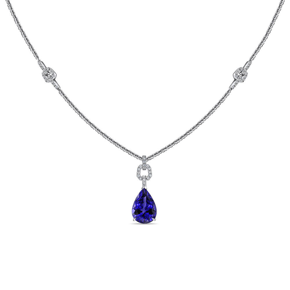 Мнение ученых едино: геологические особенности настолько уникальны, что вероятность обнаружения новых точек месторождения близка к нулю. Этот факт даёт полное право украшениям с танзанитами называться эксклюзивными, особенно, если они выполнены в единственном экземпляре, как колье и серьги из комплекта MIUZ Diamonds . В нём изысканные минералы приобрели элегантную огранку «груша». В серьгах драгоценные капли общим весом более 21 карата ниспадают вдоль шеи, а восхитительный танзанит в колье скользит по линии декольте. Лейтмотивом комплекта стали «звенья» из белого золота, усыпанные бриллиантами. Они создают лаконичный и стильный силуэт, подчеркивая особенную красоту главного драгоценного камня.
