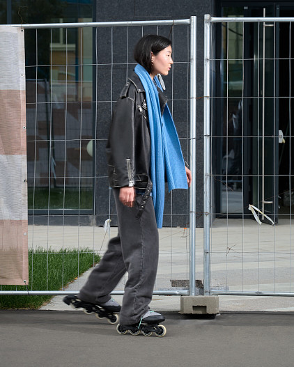 В съемке представлена героиня, которая живет в мегаполисе. Она активная и всегда в движении, передвигается по городу на самокате, велосипеде, роликах, скейтборде и сигвее, но это не мешает ей самовыражаться и быть собой, куда бы она ни отправилась.