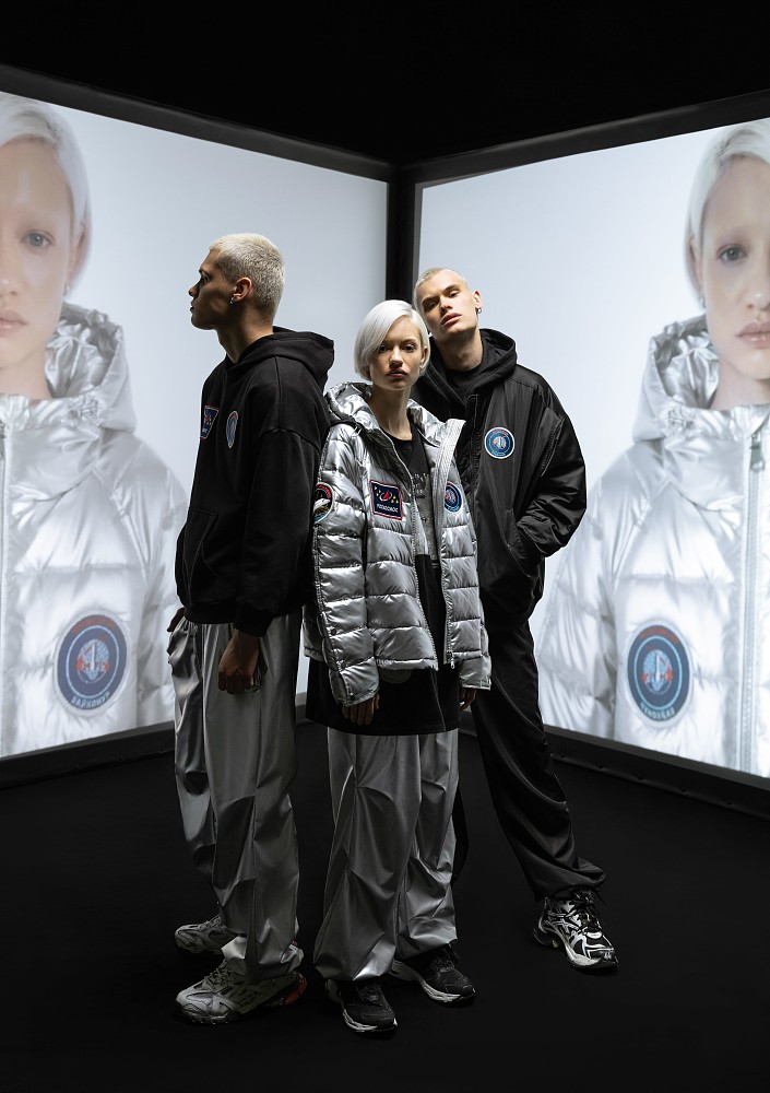 Символика Роскосмоса, футуристичный металлик и шевроны – все напоминает униформу космонавтов. В дроп вошли стеганая куртка, объемный бомбер, брюки парашюты, мини юбка, свитшоты и футболки. Последним стоит уделить особое внимание - ведь на них нанесены фотографии, снятые космонавтами в космосе.