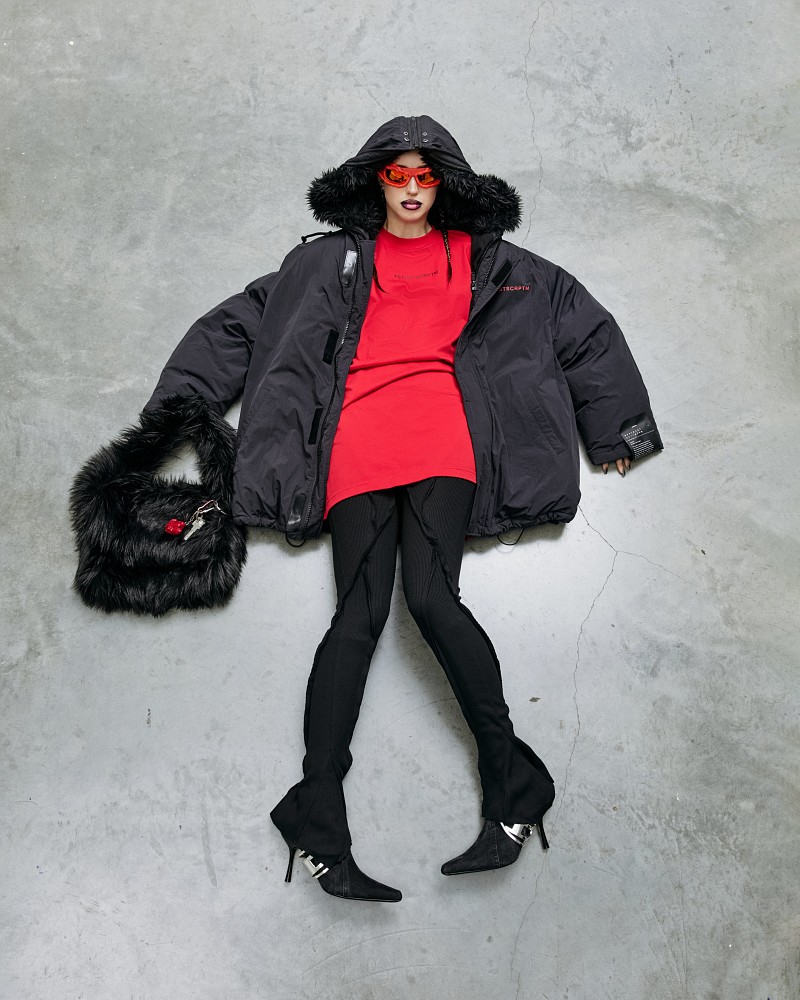 В коллекцию вошли агендерные модели уже полюбившихся фестивальных шуб и бомберов в новых оттенках и материалах, а также эксклюзивные парки с молнией на капюшоне, с помощью которой ты можешь менять форму и силуэт и постоянно пересматривать себя.