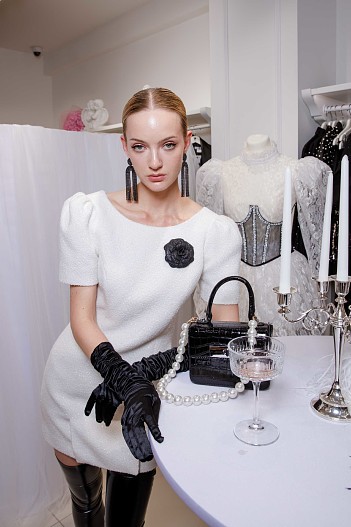 В честь своего дня рождения дизайнер Белла Потёмкина собрала своих друзей и коллег в бутике в торговом центре «АФИМОЛЛ Сити», устроив коктейльную вечеринку. Под ди-джейский сет гости угощались игристым от российской винодельни «Золотая Балка» и авторскими канапе, а также знакомились с новинками бренда Bella Potemkina. Зал, наполненный новогодними нарядами и вечерней коллекцией, украсили винтажные канделябры и бокалы в стиле «Гэтсби».