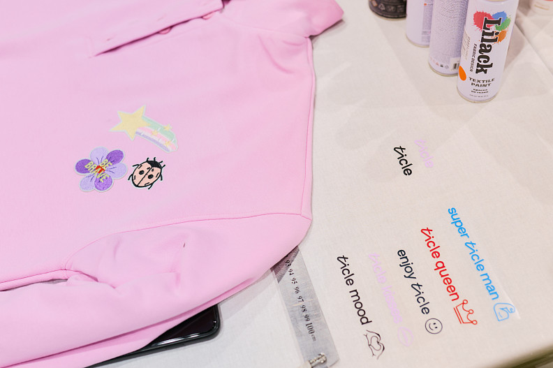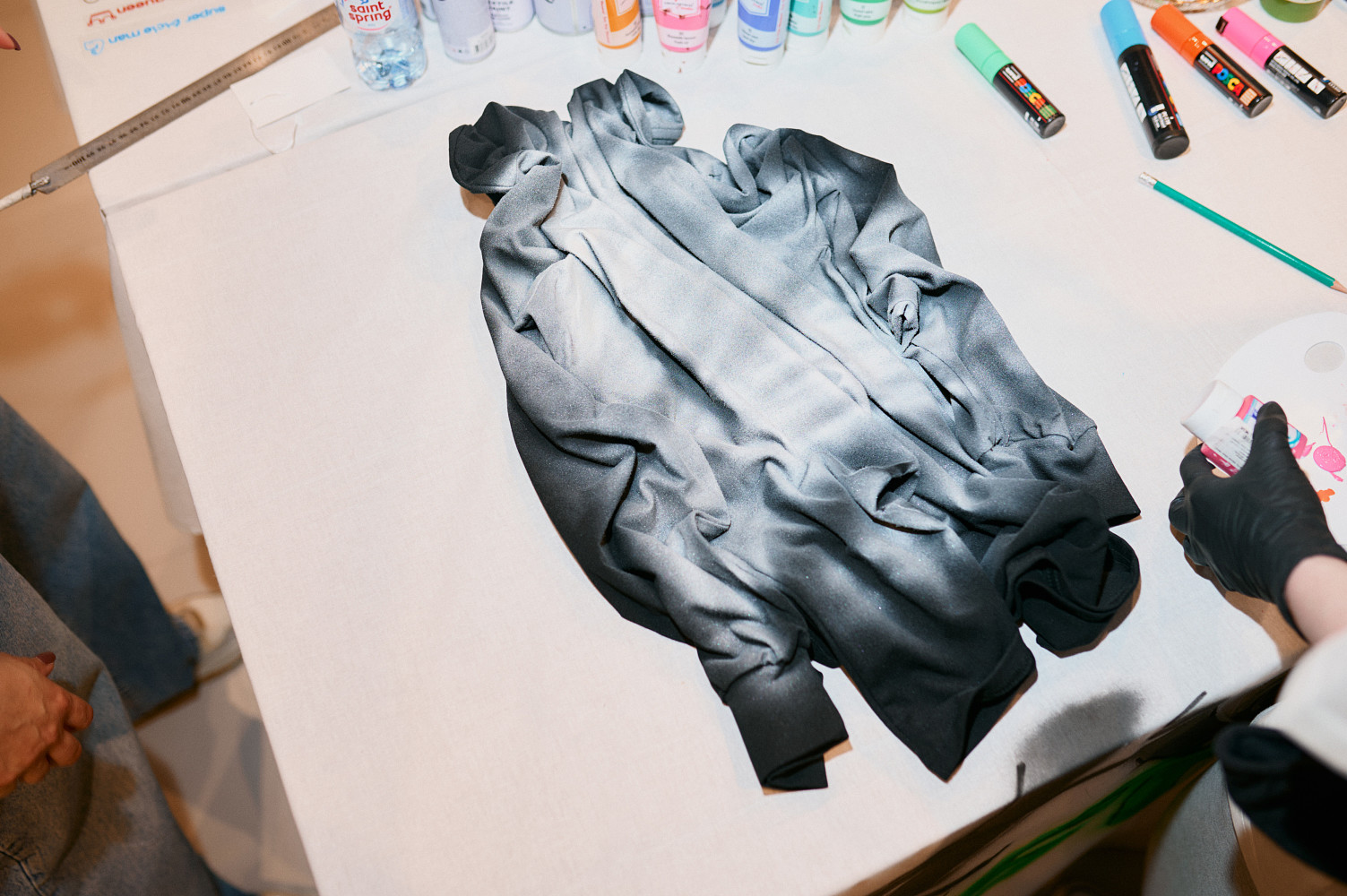 В качестве мастера по кастому выступала Карина Текеева, дизайнер бренда ticle. Она помогала каждому гостю вечеринки кастомизировать понравившиеся изделия. Так каждая футболка и худи приобрели уникальный и неповторимый вид. Двух одинаковых изделий точно не найти!