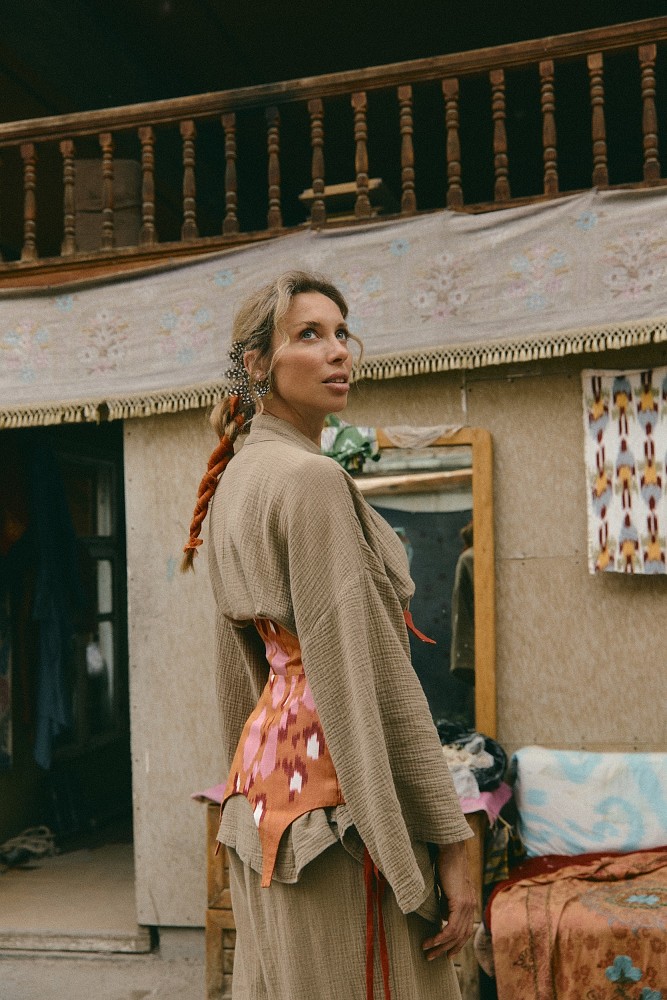 В производстве изделий бренд использует только качественные натуральные ткани. Основной материал коллекции Bloom & Blossom — адрас ручного ткачества и окраса, ткань состоит из волокон шелка и хлопка и производится в Узбекистане. Именно эта страна с ее восточным флером и самобытной культурой послужила вдохновением для весенне-летней истории. Именно туда команда бренда отправилась для создания нового кампейна. Съемка получилась сочной и красочной, наполненной историей, культурой и бытом узбекского народа. Кадры передают атмосферу востока с его шумными базарами, запахами специй, овощей и свежей выпечки. Одежда Polina Repik идеально вписывается в колорит Узбекистана, сочетая в себе модные тенденции современности и традиционные узоры и мотивы.
