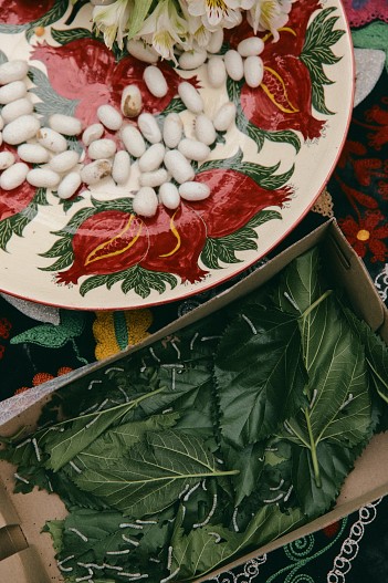Часть съемки прошла в Маргилане — настоящей шелковой столице Узбекистана. Именно здесь сосредоточены основные фабрики и ремесленные мастерские шелковых тканей, в том числе, адраса. Местные мастера проводят настоящие мастер-классы по основным процессам создания: от сбора куколок шелкопряда (один кокон дает, в среднем, до 1 километра шелка!) до получения готовой ткани. Весь процесс полностью ручной и уникальный. У каждого мастера свои секреты и ноу-хау. Так, например, для нанесения рисунка на ткань используются исключительно натуральные красители: шелуха лука, гранат, акация.