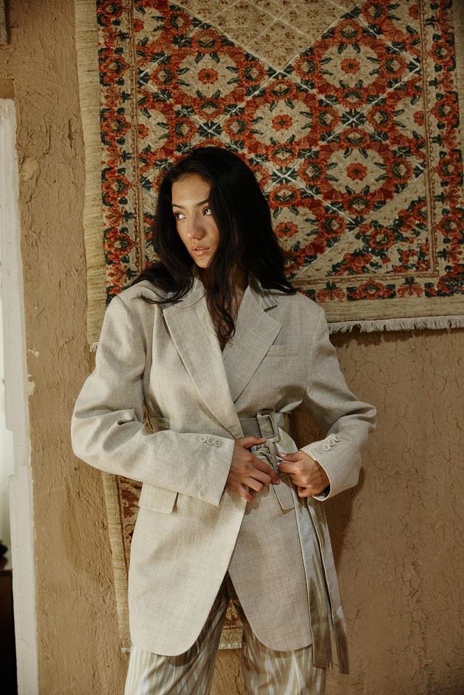 Из must have моделей этого сезона — льняные брючные костюмы-двойки. Жакет дополнен двойным поясом, а в брюках основной акцент сделан на талии. Тонкий поясок сзади позволяет носить изделие не только по официальным поводам, но и сочетать их с открытыми топами и делать образ более нарядным и свободным.
