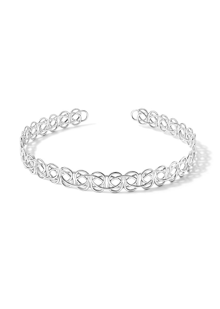 Тату-чокеры vol.4, а также браслеты и кольца – переосмысленная версия культового украшения, которое было популярно в 90-е и 10-е годы. Но если тогда его делали из резинки, то в коллекции GOSHA KARTSEV оно выполнено из серебра. «Если честно, я сам мечтал носить такой чокер. Он был слишком женственным и выполнен из очень дешевой резинки, но всё равно мне нравился», – признался Гоша Карцев.