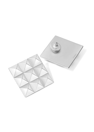 Серьги и печатки с клепками-пирамидами vol.2 отсылают к напульсникам и ремням, которые носили музыканты из рок-групп, и к урбанистической архитектуре России, а именно к бетонным заборам с ромбами. «Мне нравится, что это тот символ, который всегда с нами. Мы можем этого не осознавать, но если специально обращать внимание, то 100% за день несколько раз увидишь заборы с ромбами или схожие элементы в поздней советской архитектуре. Недооцененная архитектура столицы стала большой частью вдохновения бренда», – Гоша Карцев.