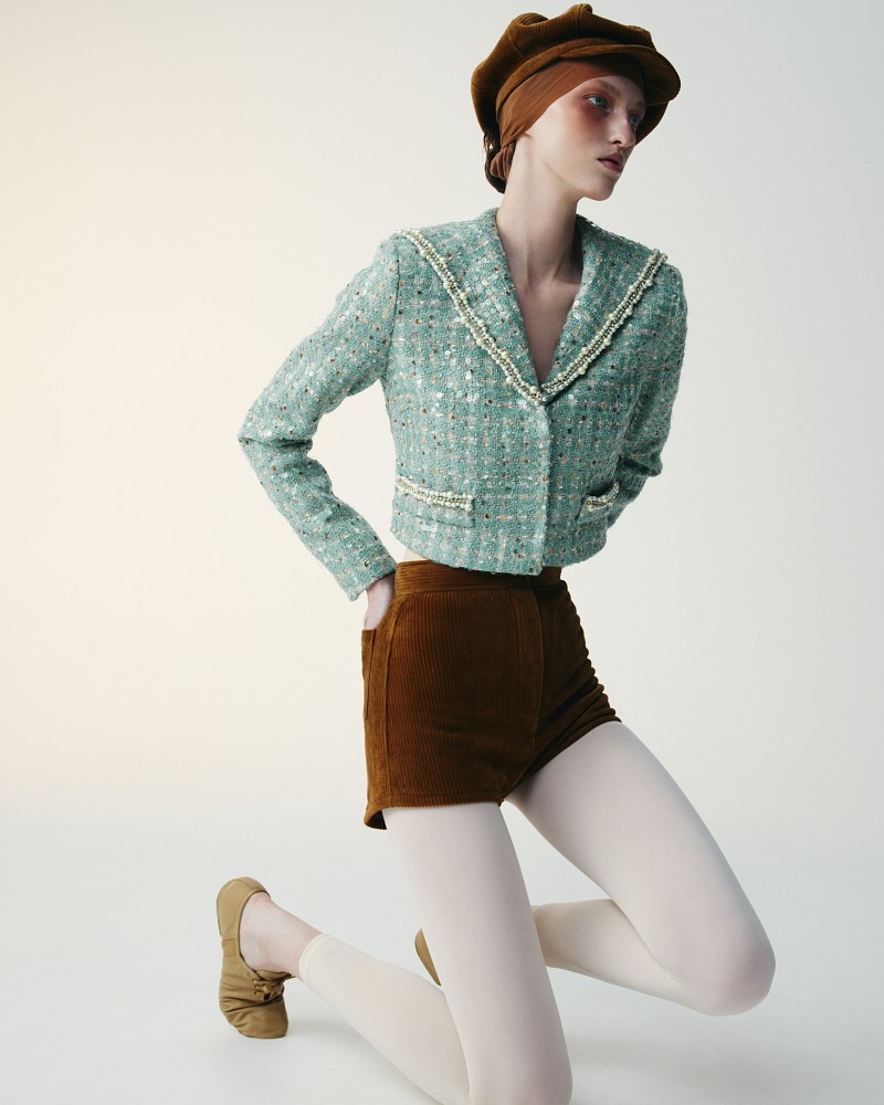 В коллекции представлены комплекты из твида, вельветовые бомберы и микро-шорты, шуба и аксессуары из искусственного меха, а также коктейльные платья, расшитые пайетками, и многое другое.