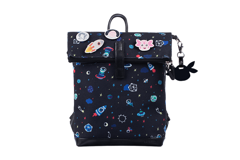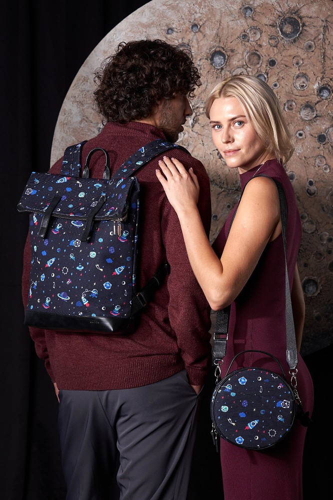 В коллекцию вошли практичные кожаные изделия, где спряталось тиснение с главным персонажем коллаборации, а также аксессуары из кожи и канваса с яркими принтами космоса и лета.