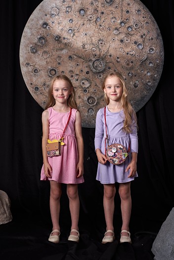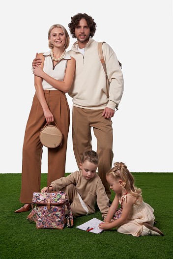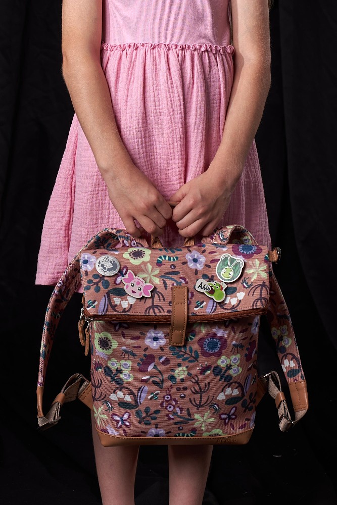 В линейке есть универсальные рюкзаки с отворотом и аккуратные геометричные сумки на молнии в двух размерах: поменьше — для детей, побольше — для взрослых. Также в коллекции можно найти кошелек-сумку с узнаваемыми милыми ушками и деревянные значки с персонажами любимого мультсериала, которые прекрасно дополняют каждое изделие из коллекции.