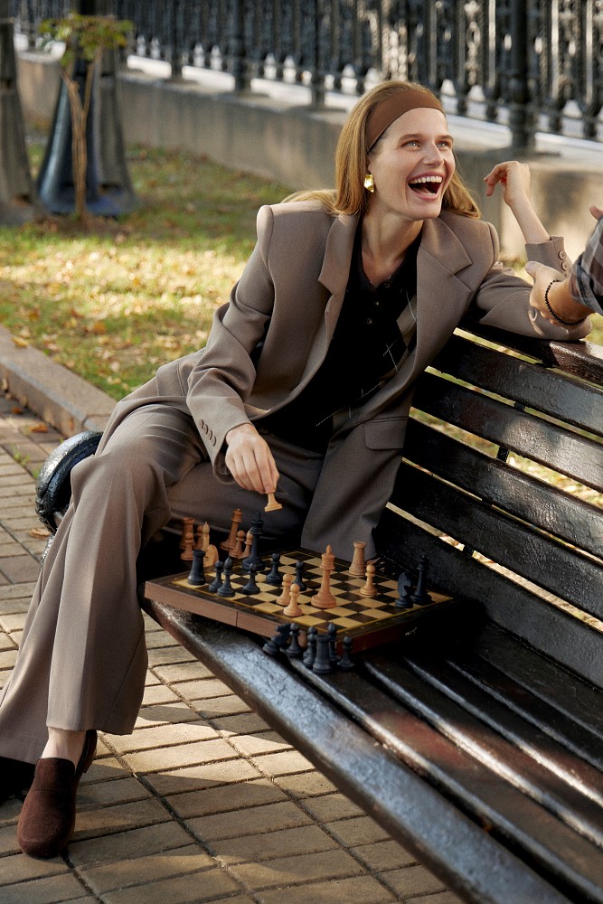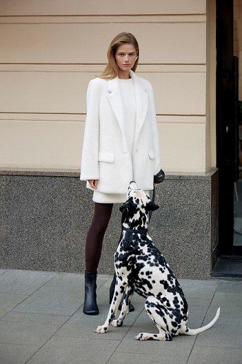 Всю верхнюю одежду в ближайшие месяцы можно уверенно заменить key item – пиджаком из пальтовой ткани или пиджаком из ворсовой ткани. Особенно полюбившийся коричневый монохром в этом сезоне бренд предлагает составить с костюмом и платьем из экозамши.