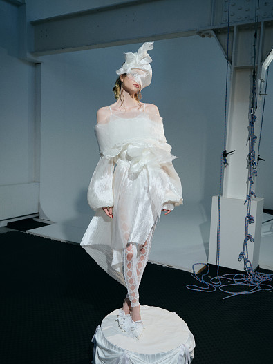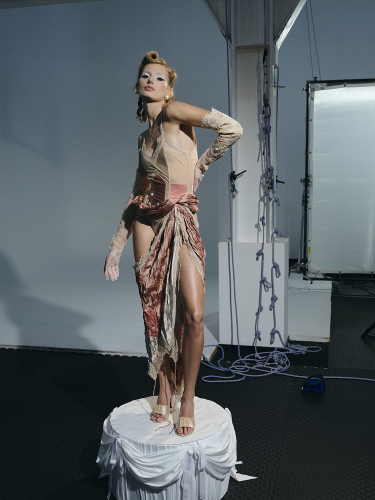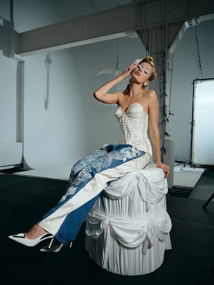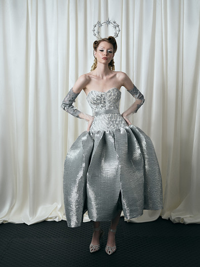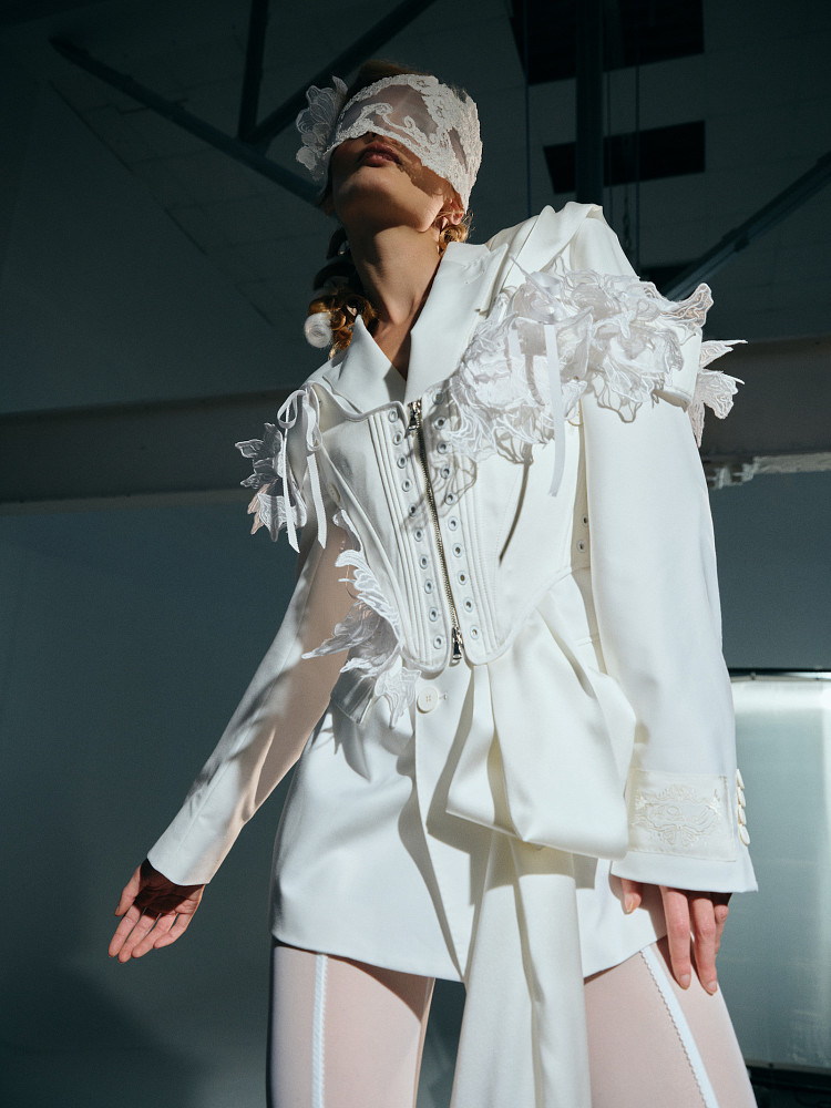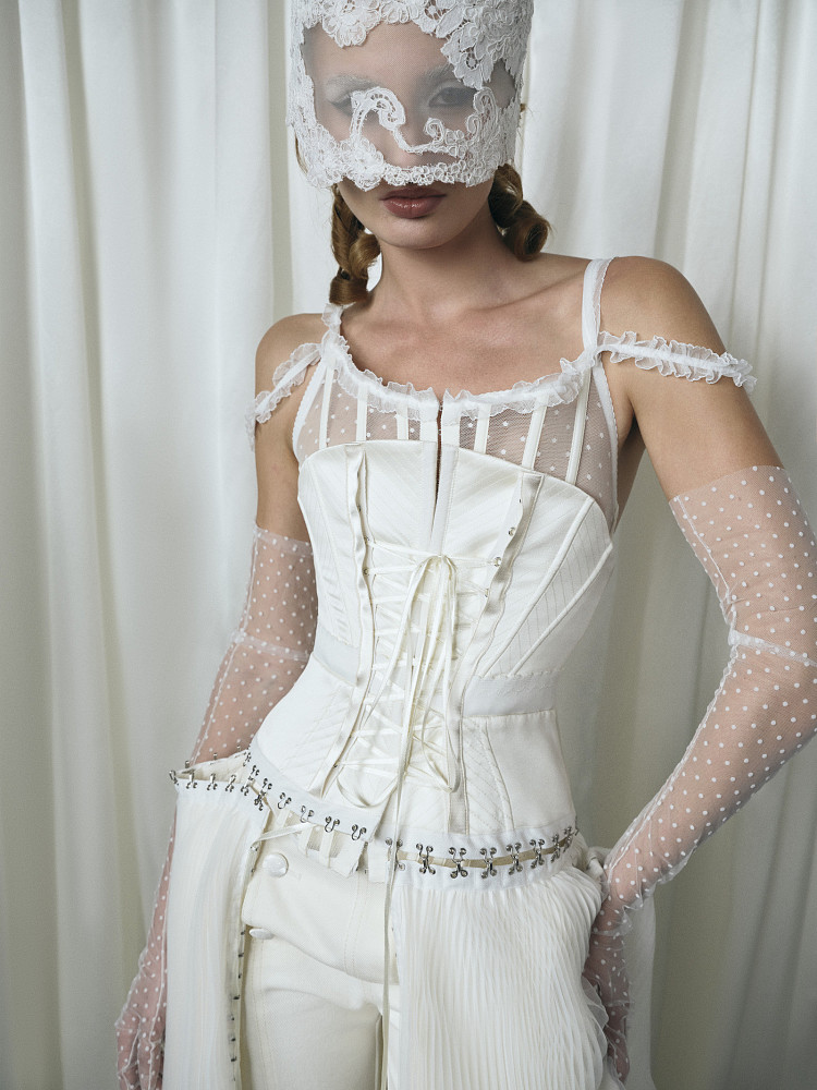 Blur – это смелый эксперимент с женственностью, где кружева и шелк переплетаются со строгими корсетными линиями, а полупрозрачные ткани создают ощущение невесомости и легкости. В этой коллекции Даниил продолжает изучать тему корсета, делая его центральным элементом многих образов. Ключевая идея Blur – это ощущение волшебства, которое пронизывает каждый образ.