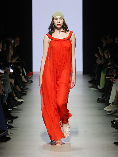В этот раз дизайнер бренда Leffers представила зрителям коллекцию Athena, раскрывая женскую красоту через образы греческих богинь. Но коллекция не состояла из характерных хитонов — наоборот, традиционные силуэты сочетались с современными решениями. Декоративные узлы и драпировка на бедрах украсили облегающие юбки макси, перекрученные бретели, спущенные на плечи, отсылали к хитонам, дополняя полупрозрачные летящие платья. Тренчи с динамичной бахромой, перекрученные детали как основные элементы с древнегреческими мотивами, асимметричный крой и летящий шлейф — вот главные элементы коллекции.