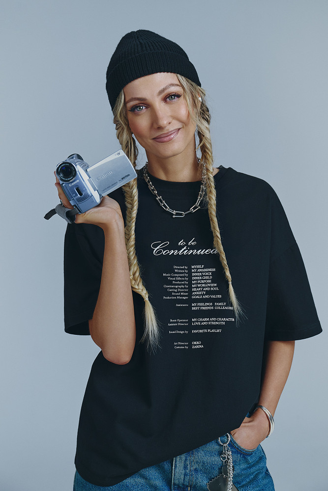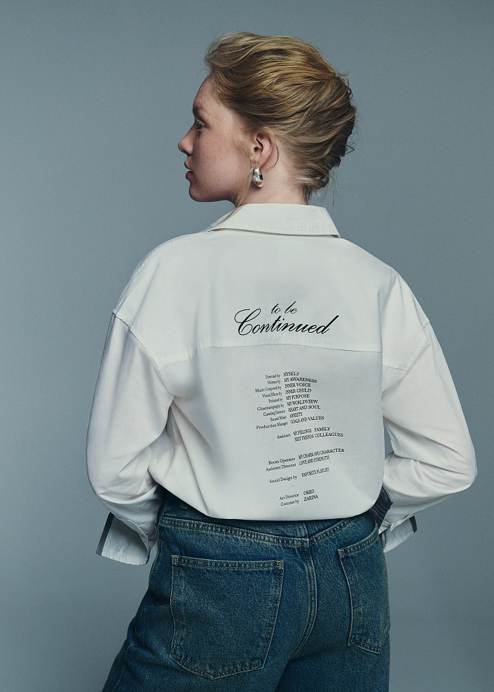 Главная идея новой коллекции одежды от Okko и бренда ZARINA ― перенести уникальный опыт из мира кино в реальность, подчеркнув, что образ каждого человека ― важная составляющая ежедневного сценария жизни. Например, усилить сходство с профессией режиссёра поможет рубашка молочного оттенка с контрастной отделкой, свободным силуэтом и принтом в стиле финальных титров. Но главное здесь то, что модель выполнена из 100% хлопка, ведь в жизни, как и на съёмочной площадке, важно сохранять комфорт. Динамичность сюжета коллекции поддержит сет в эстетике преппи: широкие брюки с фактурными стрелками легко сочетаются с любой моделью коллекции, а свитшот в стиле поло ― главный тренд сезона.