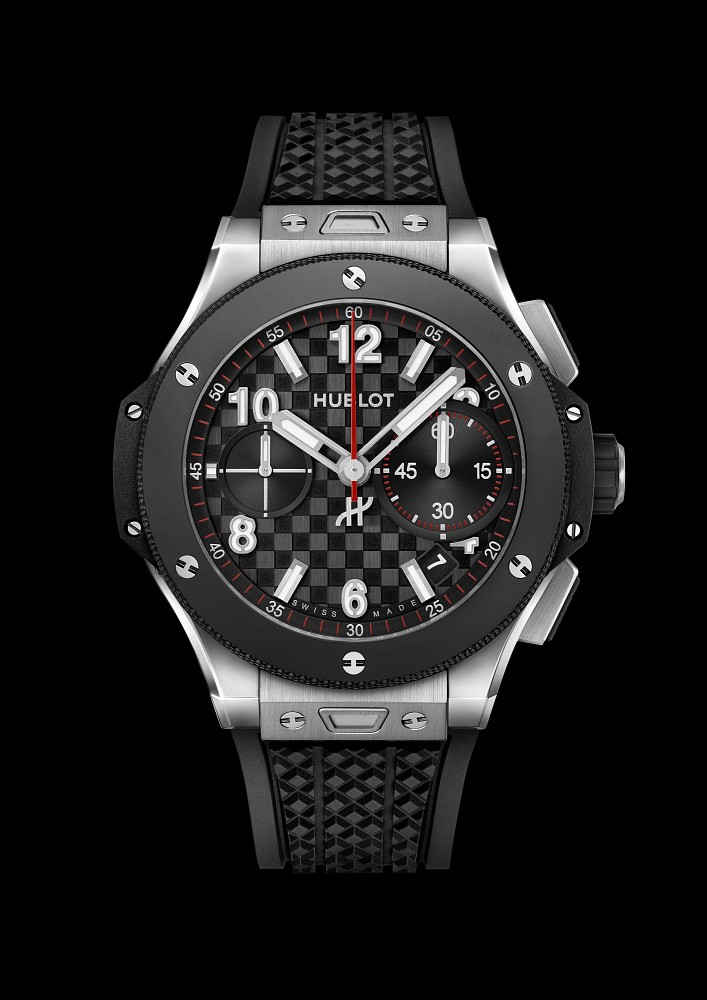 Все началось с философии, получившей название «Искусство сочетать несочетаемое». Когда в 2005 году появилась модель Big Bang, она была представлена двумя версиями, которые задали тон всей коллекции в соответствии с философией «Искусство сочетать несочетаемое» и принесли Hublot и Big Bang мировое признание. Сочетание стали и золота, стекловолокна, каучука и керамики с узорчатым циферблатом, напоминающим переплетение нитей углеродного волокна, и акцентов красного цвета сразу же узнаваемо. В лимитированных сериях Big Bang 20th Anniversary, выпущенных в количестве 500 экземпляров в версии с комбинацией титана и керамики и 250 экземпляров в версии с комбинацией керамики и золота King Gold, компания Hublot оптимизировала каждую деталь. Корпус получил новый диаметр 43 мм и слегка изогнутые ушки. Полированный безель имеет рифление с боковых сторон, напоминая самые ранние модели Big Bang. В новых версиях также вновь появились прямоугольные кнопки с каучуковой накладкой, которые использовались в первых моделях Big Bang, а также текстурированный каучуковый ремешок с ромбовидным узором, который можно легко сменить благодаря встроенной системе One Click.