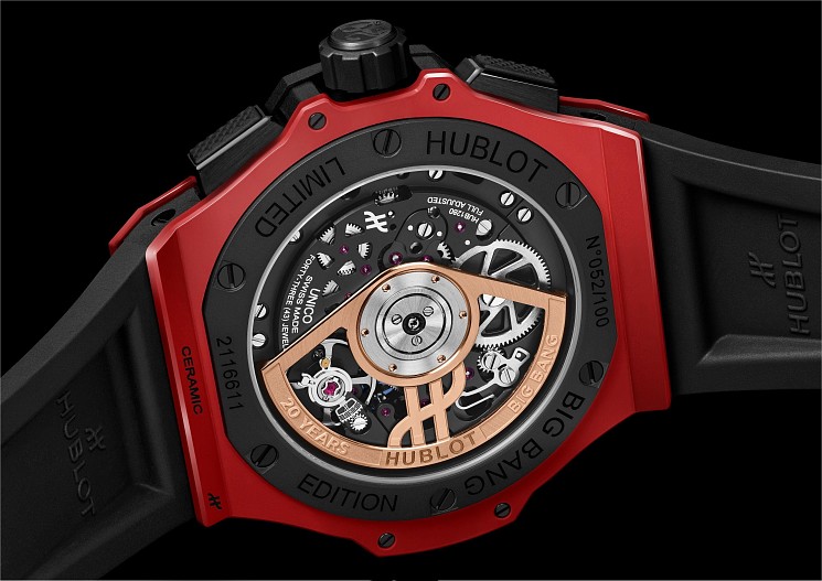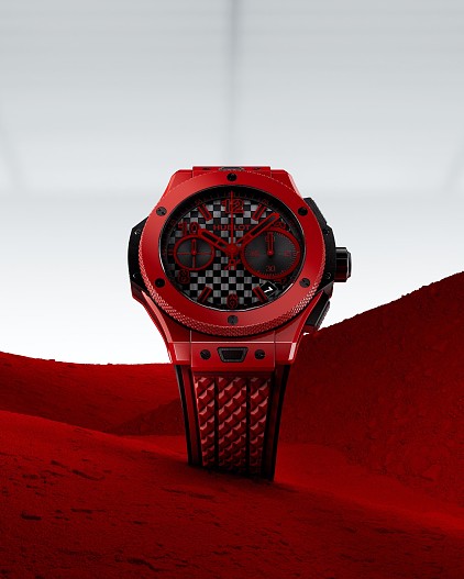 Керамика всегда играла неотъемлемую роль в появлении и совершенствовании модели Big Bang. Но то, что компания Hublot сделала за последние годы, ― настоящий прорыв в производстве керамики ярких цветов, которые ранее не встречались в часовом искусстве. Это немалое достижение, так как цветная керамика очень сложна в производстве. От правильных красителей до точного давления и температуры, чтобы добиться структурной целостности материала и однородности цвета приходится пройти долгий путь проб и ошибок, тем более, что все параметры индивидуальны для каждого цвета. Первой цветной керамикой, разработанной и изготовленной на мануфактуре Hublot, стала красная керамика, впервые представленная в 2018 году. В честь этого важного достижения, являющегося первой мануфактурной технологией в ряду многочисленных разработок компании Hublot, характеризующих ее как лидера инноваций, версия Big Bang 20th Anniversary Red Magic в количестве 100 экземпляров дополняет квинтет юбилейных моделей. Сочетание ярко-красной керамики и циферблата с узором, напоминающим переплетение нитей углеводородного волокна, настолько же экспрессивно, насколько смело и индивидуально.