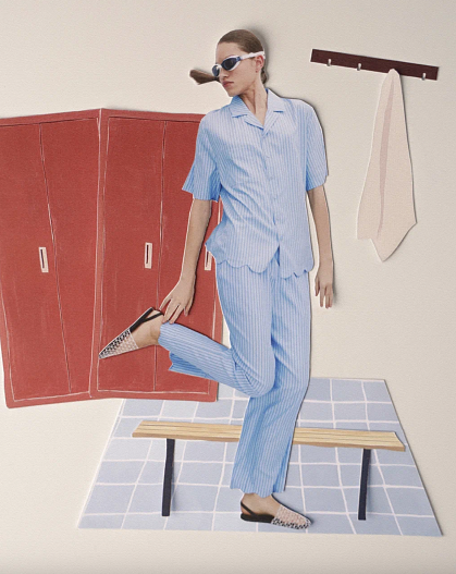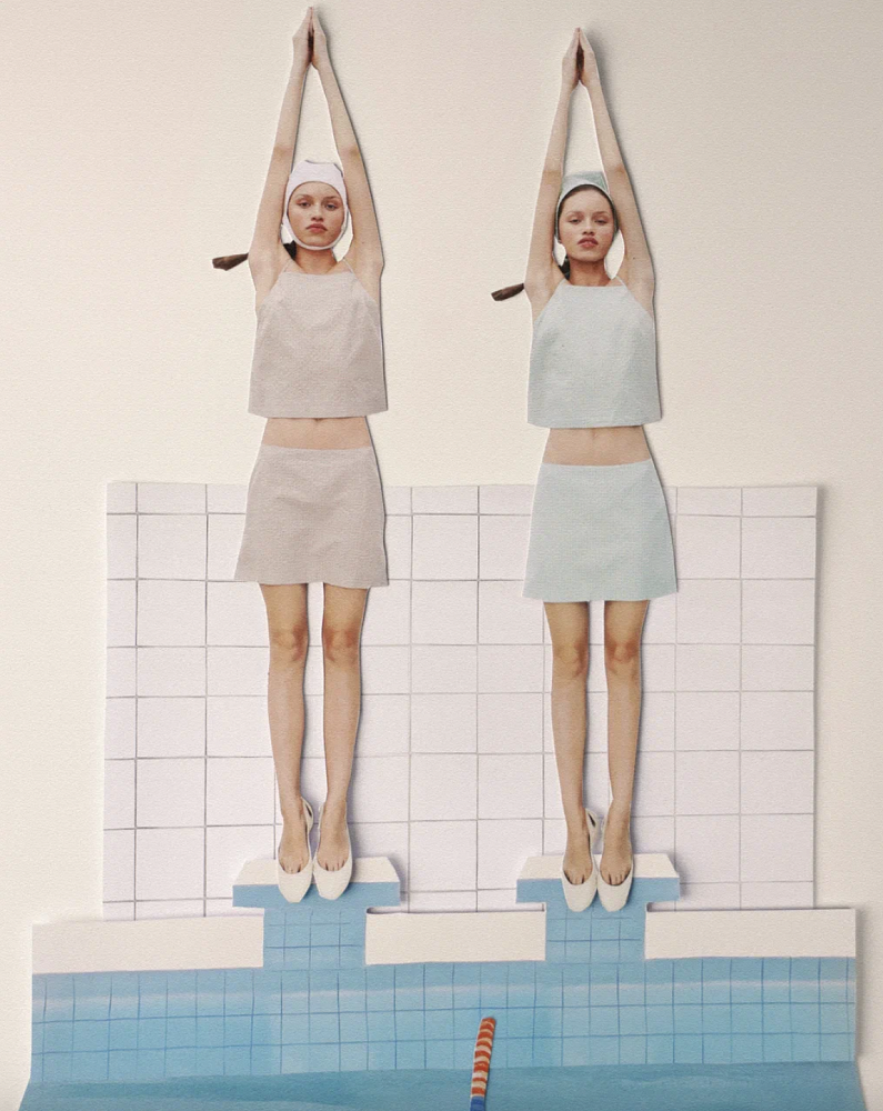 Дизайн-команда погрузилась в советскую спортивную эстетику. Одним из источников вдохновения для коллекции стала архитектура бассейнов с их геометричностью и лаконичностью. Монохромные интерьеры часто были украшены яркими мозаиками. В каждую модель летней коллекции тоже привнесена какая-то своя особенность и уникальная черта.