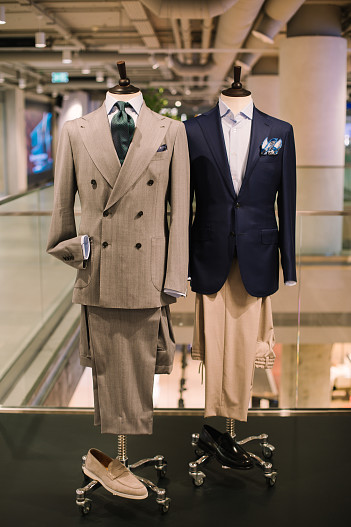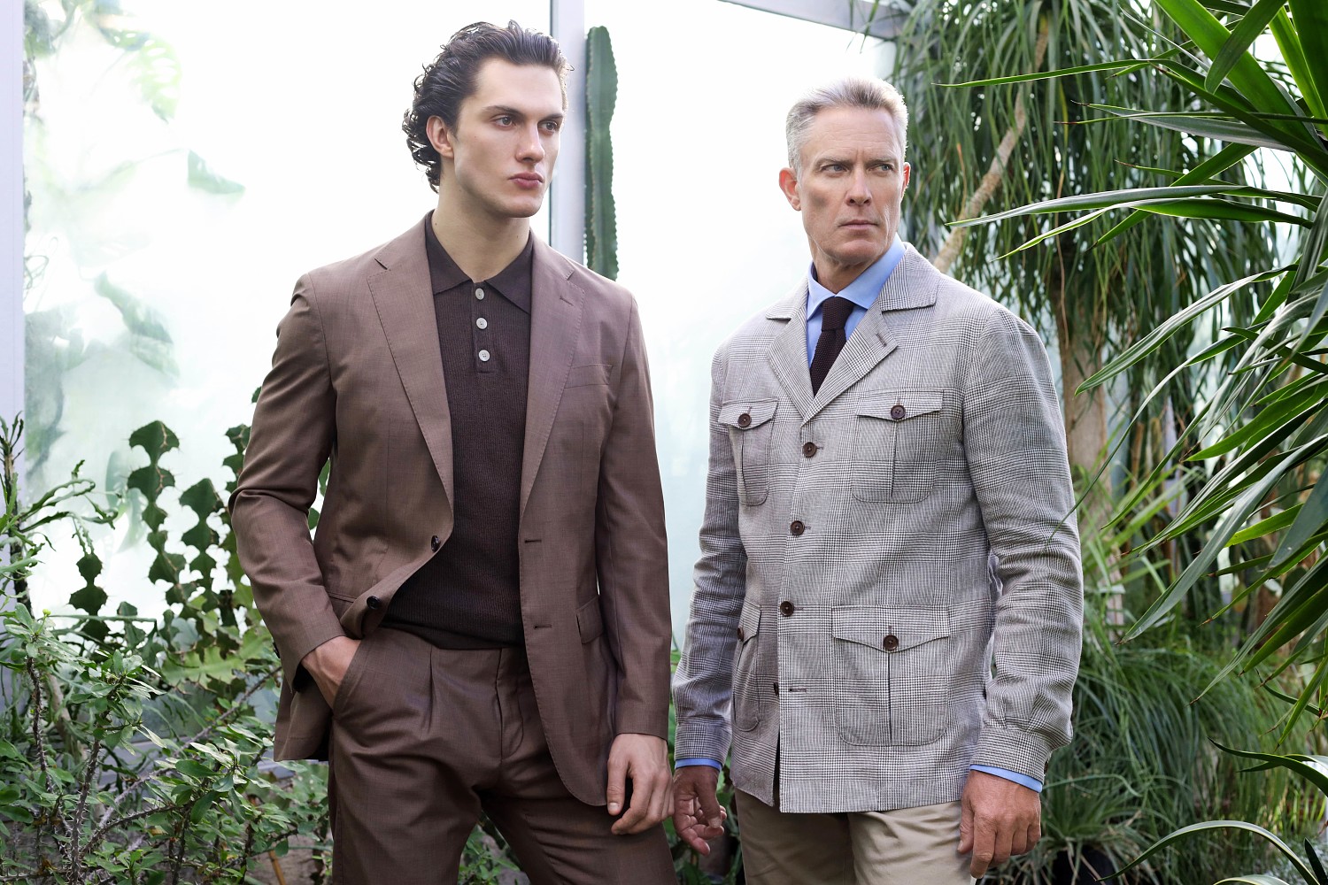 В коллекции представлены различные модели костюмов с разными типами посадки, чтобы каждый клиент мог подобрать любой вариант согласно собственным предпочтениям в стиле и индивидуальным особенностям телосложения. Например, есть модель, которая отличается классическим приталенным кроем и подчеркивает силуэт, или другая модель в более свободной форме, которая обеспечивает комфортную и расслабленную посадку. Пиджак сафари характеризуется мягкой линией плеча и свободной, непринужденной формой — идеальный выбор для тех, кто ценит легкость и современный подход к классике.