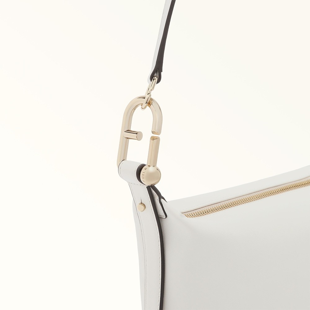 Furla Nuvola Хобо — более крупная модель с четкими графичными линиями, подходящая для насыщенных дней, когда хочется взять с собой всё необходимое. Внутреннее пространство продумано до мелочей: два широких отделения с магнитными застёжками и центральный карман на молнии обеспечивают легкий доступ и надежное хранение. Эта модель гармонично сочетает объём и визуальную легкость, оставаясь стильной в любой ситуации — от офиса до вечернего выхода.