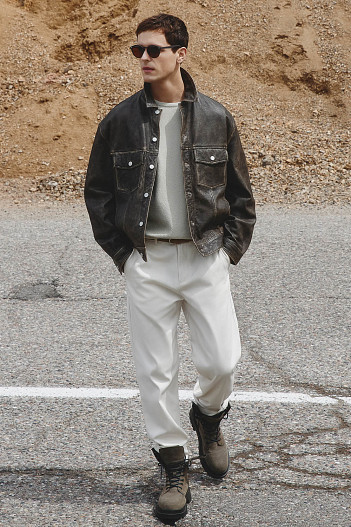 Мужская часть коллекции построена на сочетании натуральных материалов и лаконичных форм. Замшевые рубашки и бомберы, легкие куртки, базовые футболки и брюки — идеальный баланс стиля и комфорта.