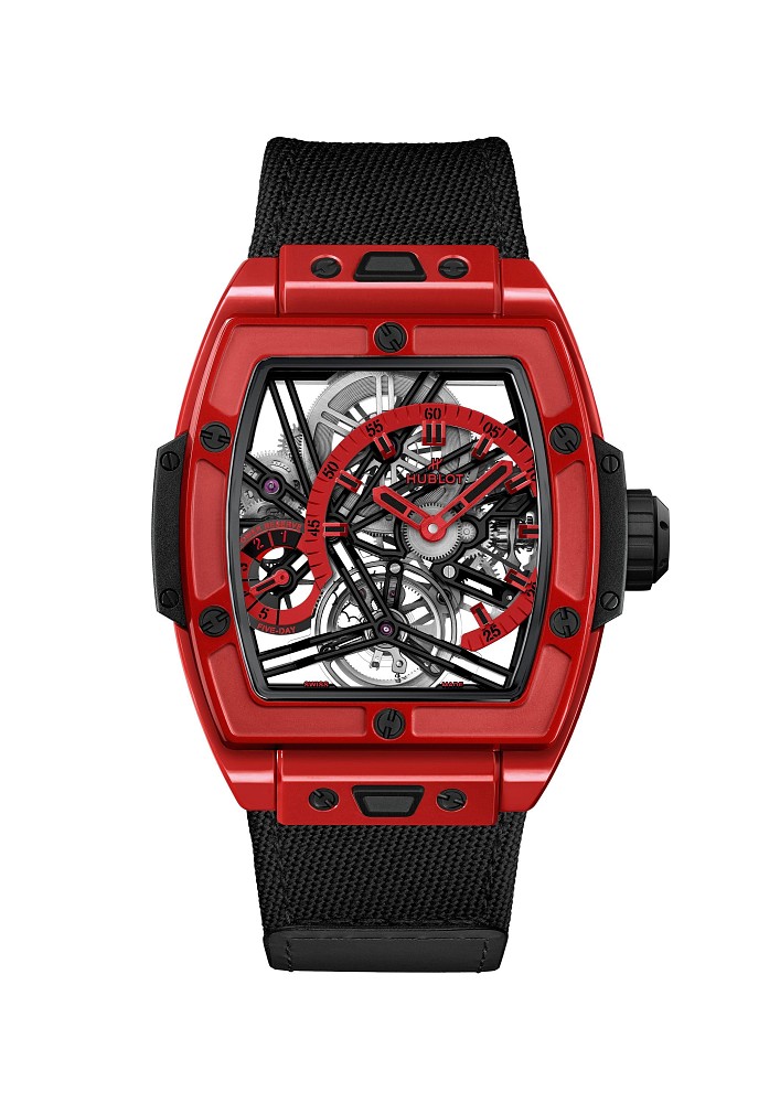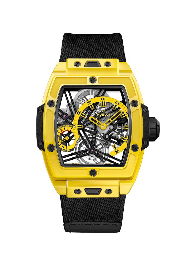 Логичный следующий шаг: применить самые современные технологии производства цветной керамики Hublot для корпуса часов Spirit of Big Bang Tourbillon 5-Day Power Reserve. Наконец, официальная информация: часы Spirit of Big Bang Tourbillon 5-Day Power Reserve доступны в красном, черном, желтом и небесно-голубом цветах. Четыре новых цвета в одной серии демонстрируют стремление Hublot поделиться своим опытом со всеми поклонниками Spirit of Big Bang. Новые версии — также уникальная мировая премьера, так как до сих пор часы Spirit of Big Bang Tourbillon 5-Day Power Reserve предлагались в корпусе из белой керамики или углеволокна.