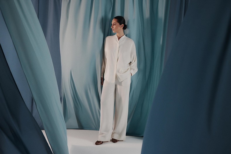 Вдохновившись чистотой форм, свободными силуэтами и нежной акварельной палитрой, бренд создал лимитированные изделия из натурального тутового шелка. В них каждая деталь — от плавных линий до удлиненных силуэтов — передает ощущение утонченности, неспешности и гармонии.