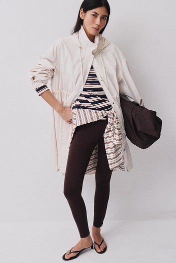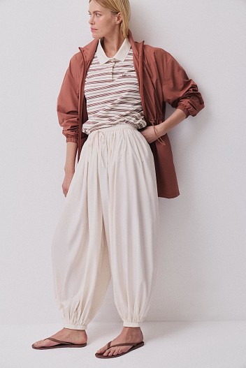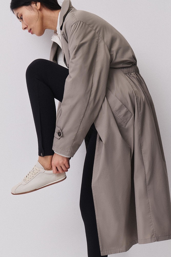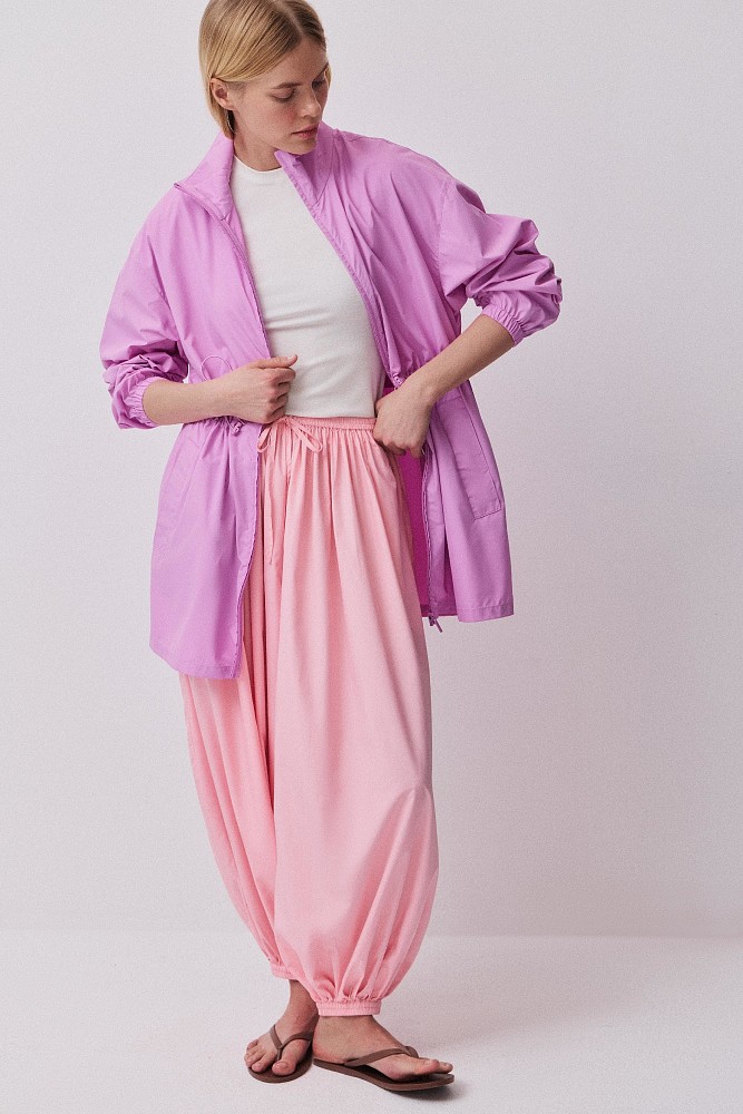 В капсулу вошли парка, ветровки, плащ и несколько моделей брюк. Объемные брюки-алладины, уже знакомые покупательницам бренда, возвращаются в обновленной палитре. Легкая ткань мягко движется при ходьбе, а эластичный пояс комфортно фиксируется на талии и не создает лишнего давления.