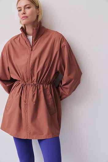 В центре истории — модели из тонкой плащевой ткани с водоотталкивающей пропиткой. Сегодня такие материалы становятся частью повседневного гардероба, отвечая на запрос на мобильность и функциональность.