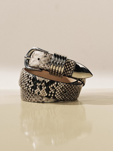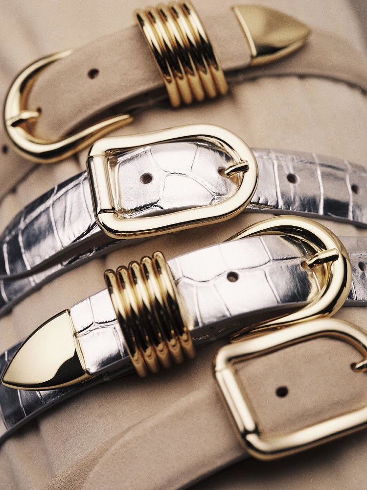 Ремни Déhanche вручную производятся в Вероне из экологично произведенной телячьей кожи. Фирменная фурнитура с покрытием из 24-каратного золота и серебра становится ключевым акцентом каждого изделия, отражая приверженность бренда долговечному качеству и утончённой роскоши. Среди ключевых моделей марки — широкие ремни, напоминающие корсеты: они подчеркивают талию и выступают выразительным элементом образа.