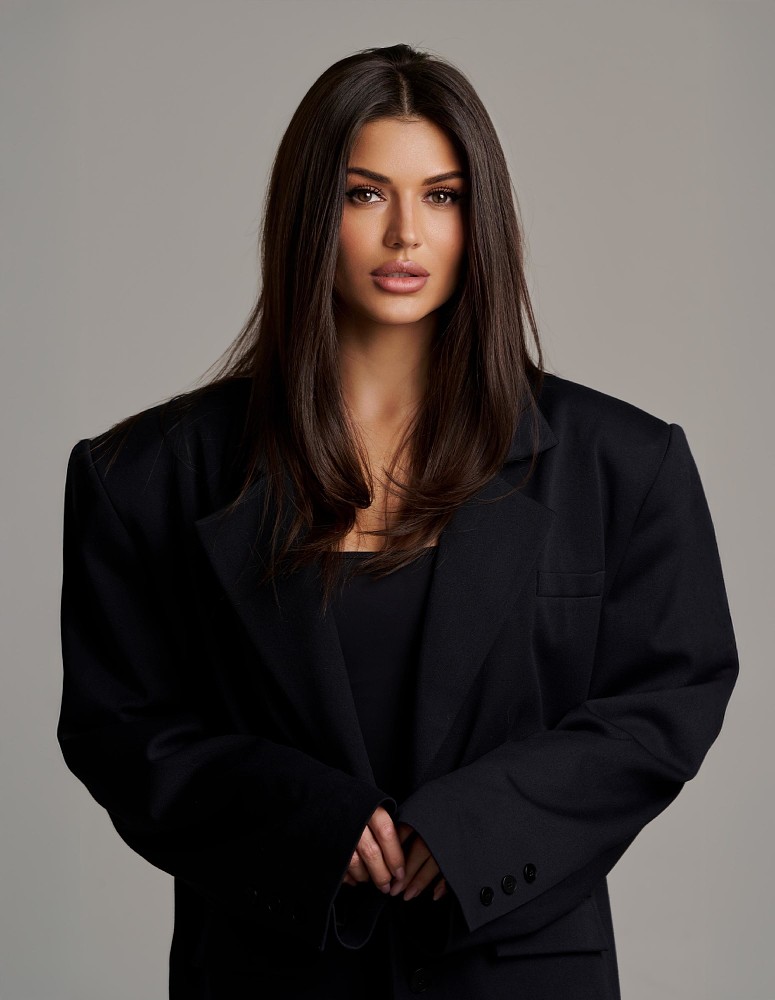 Макияж был минималистичным: идеальная сияющая кожа, мягко подчеркнутые глаза и нюдовые губы, которые лишь усиливали эффект естественной красоты. Волосы были уложены максимально лаконично — гладкая укладка с прямым пробором добавила образу строгости и элегантности.