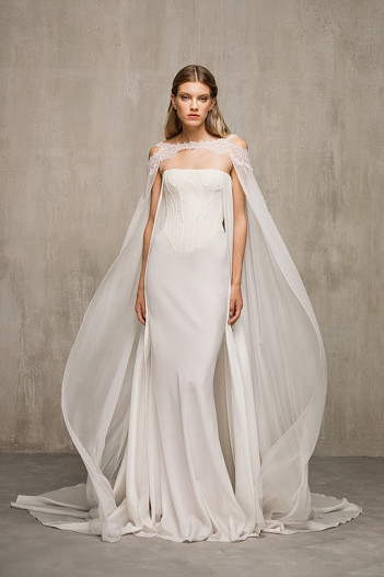 Коллекции свадебных дизайнеров не такие провокационные, как коллекции, представленные на обычных Неделях моды. Практически всегда можно увидеть классические модели вне времени. Так, вечную классику можно встретить в лукбуках Marchessa Notte, Elizabeth Fillmore, Pronovias и российского бренда Edem. Но есть нюансы. С одной стороны, в коллекции Edem – классические силуэты свадебных платьев, с другой – акцент в них сделан на сложный крой и деталях. «Edem стремится предложить клиентам другое виденье свадебного платья, показать чувственность и романтичность. В новой коллекции мы старались не думать о тенденциях, а сосредоточились на том, чего хочет наш клиент. Поэтому мы переосмыслили классические силуэты платьев, сфокусировав внимание на сложном крое, деталях и комфортной посадке», – такова концепция коллекции осень 2021.