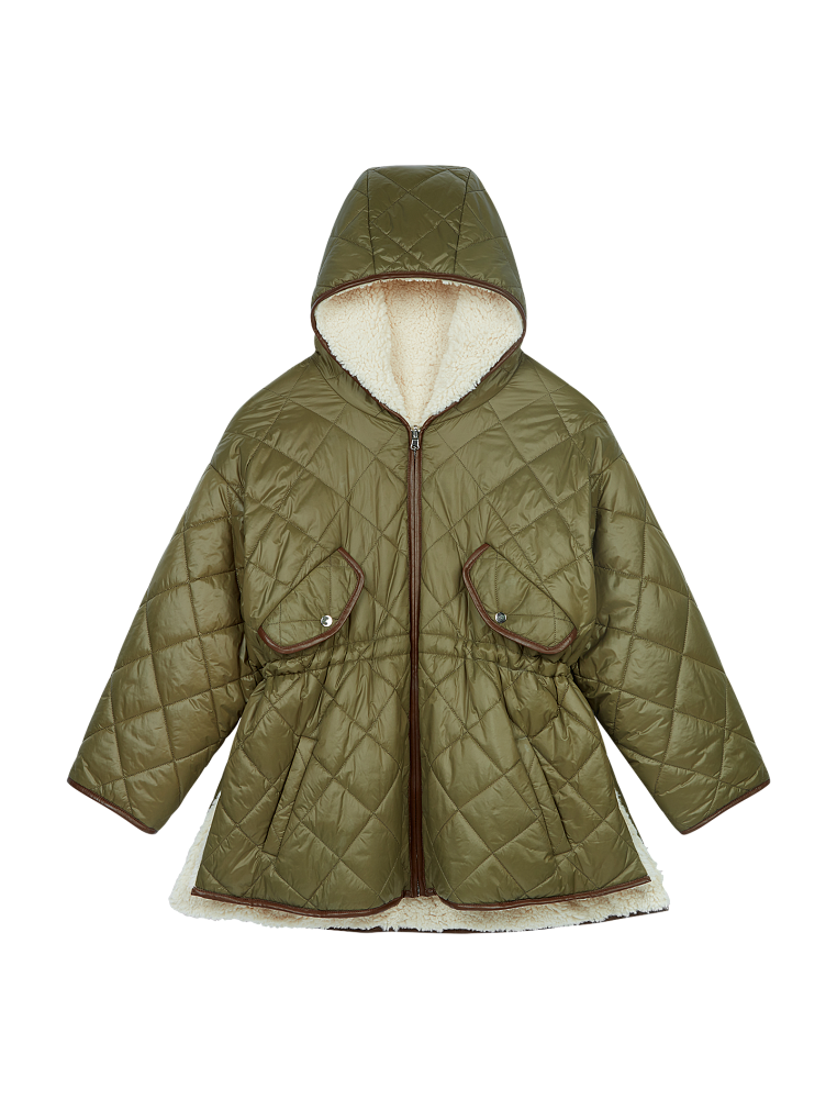 Нам очень нравятся пальто у Maison Margiela. Сам по себе вроде пуховик, но выглядит как пальто, да еще и двубортное, а значит, стилизовать его будет куда проще. Отлично будет смотреться и с платьем, и с трениками. Просто супервещь! У Maje заслуживает внимания стеганая куртка-рубашка на кулиске — как раз сделаем талию на бесформенной верхней одежде. Это всё же редкость для пуховиков, которым зачастую не хватает пропорций.