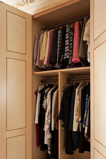 Чтобы в гардеробе был порядок, необходимо определить место для каждой вещи. Впоследствии, каждый раз, когда вы будете ее использовать, с легкостью сможете положить на место и не будете забывать про ее наличие. Присмотритесь к вертикальному хранению вещей. Если, открывая шкаф, вы будете видеть все изделия, то и пользоваться станете чаще всем разнообразием, а не только теми нарядами, которые лежат сверху и сразу бросаются в глаза.