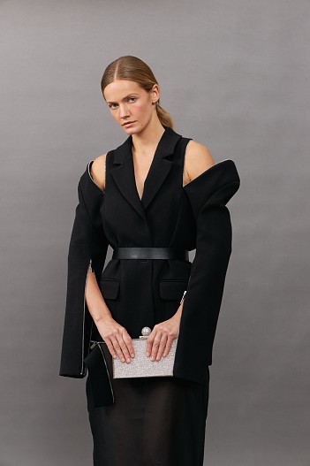В новом дропе пиджак HeartBreaker, который за счет разрезов на рукавах и по бокам превращается из повседневного жакета в наряд для вечеринки или похода в театра, представлен в двух оттенках — черном и белом.