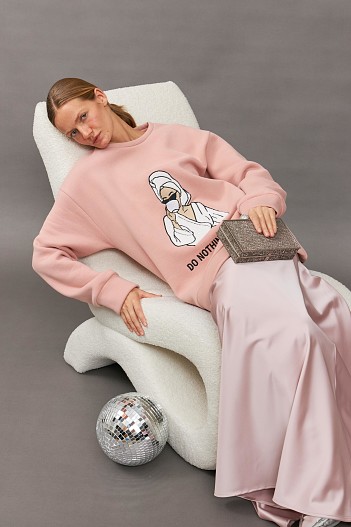 Свитшоты уже давно стали любимчиками клиентов бренда. Они выполнены из нежного, мягкого матового футера с начесом. Носить свитшоты бренд предлагает как на вечеринку в сочетании с юбкой и сверкающим клатчем, так и дома с любимыми джинсами или джогерами.